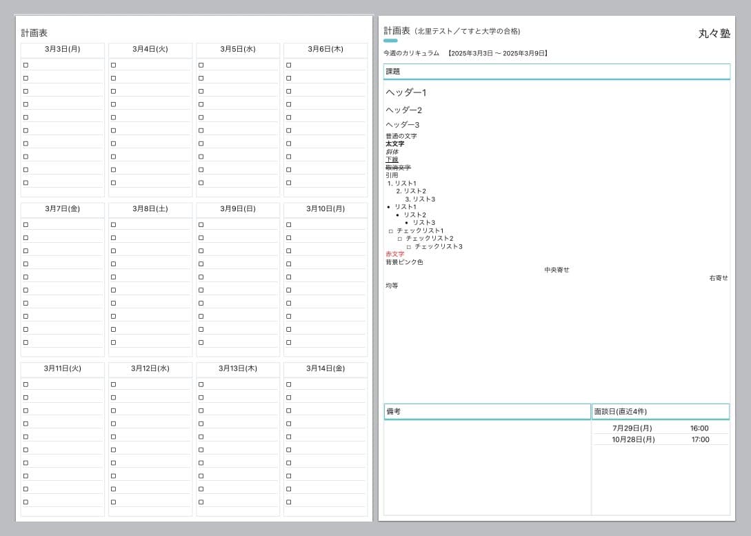 既存の塾専用システムでは、生徒ごとの課題管理ができなかった。Excelで管理していたが、生徒への共有が難しく、課題を印刷して渡したかったが対応できるシステムがなかった。